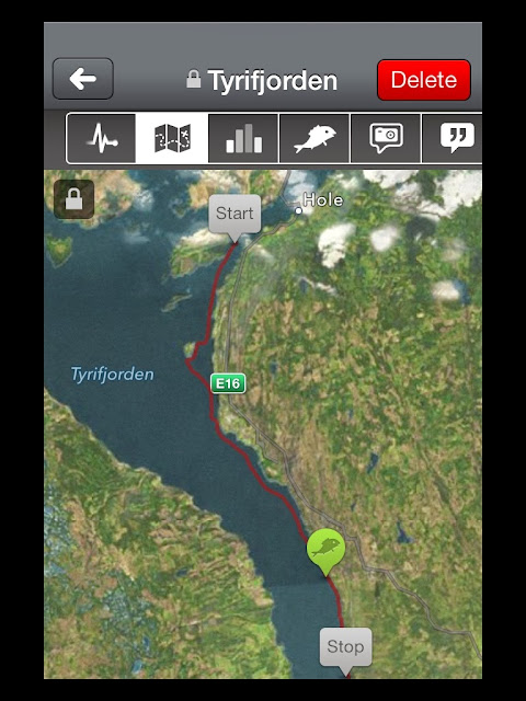 Fishbrainappen som jeg har brukt siden i sommer. Som du ser ligger hele ruten min der.
