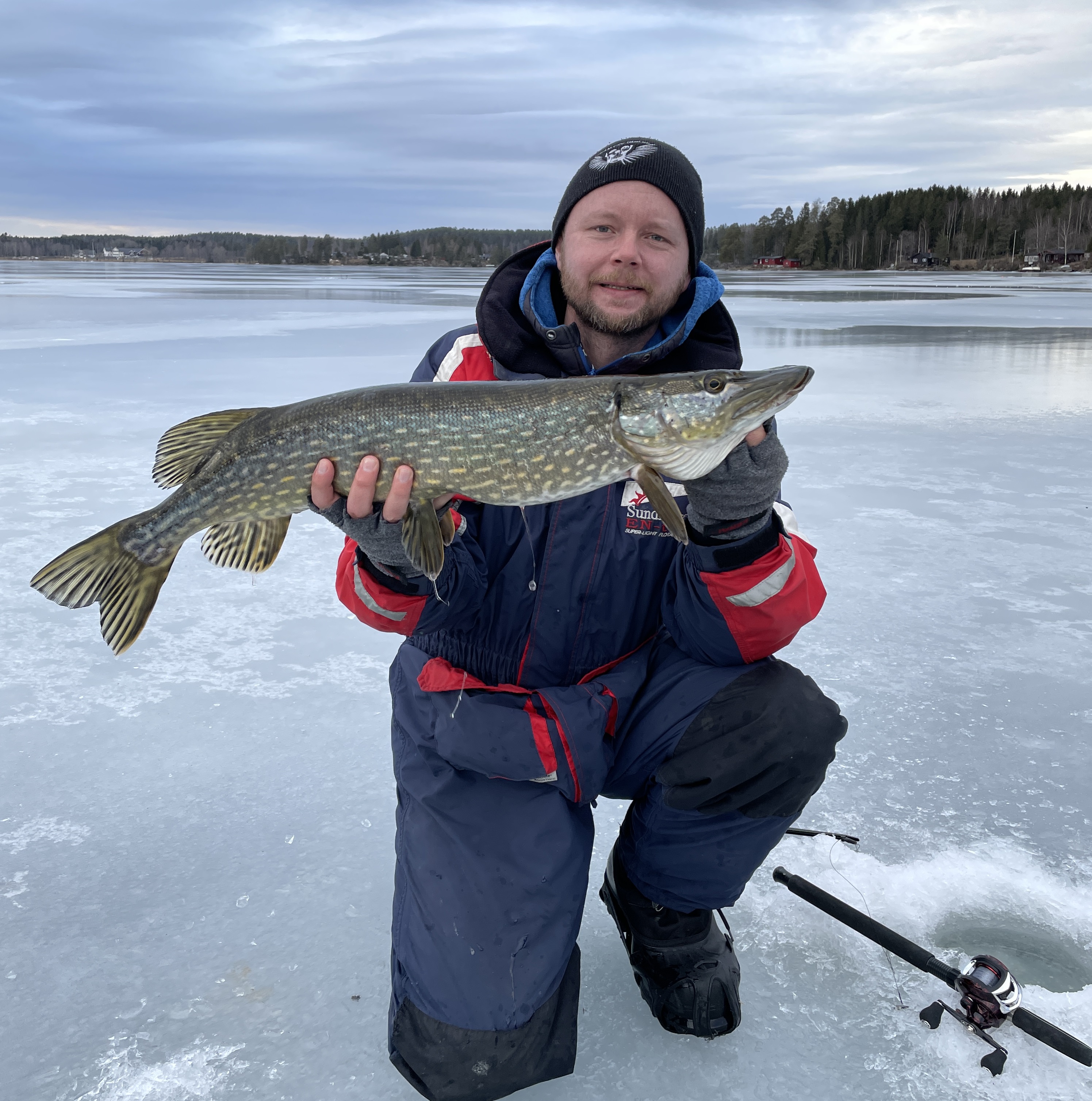 Det var ikke bare morten som var treg på dagtid. Gjeddene glimret med sitt fravær i mange timer de også, før det kom et lite rush på ettermiddagen. En markbar endring fra tidligere turer og denne, var at denne dagen tok alle gjeddene på stengene som stod grunt. Det var bare inne på 3-3,5 meter vi fant mort og gjedder, på dypere vann ble det ingen gjedder og ingen mort men kun et par abbor på pimpel. Det klassiske 4-bittet leverte som vanlig, og vi endte igjen med tre gjedder opp og et run som ikke ble kroket.
