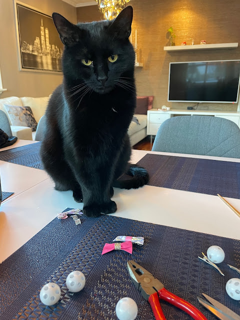 Start med å fjerne alt dilldall fra hårspennene så du sitter igjen med kun klypen. Det går også å skaffe kun klypen, men ofte er det billigere å kjøpe hårspenner på Cubus, H&M etc. Det ser kanskje (?) penere ut med en sløyfe under, men det er kun ekstra dødvekt du ikke trenger i dette tilfellet.
